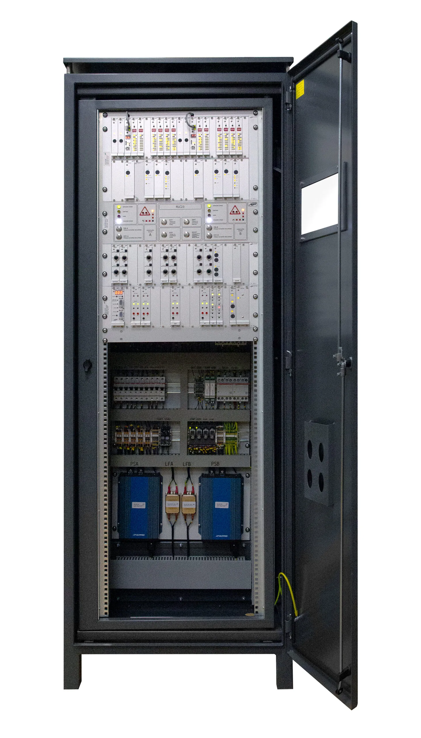 RLC23 system provides light, sound and/or physical protection to a level crossing site. Its high configurability possibilities are provided through unique PC application – time parameters, the number of outdoor units controlled, different info to be received by the interlocking/AP… RLC23 central device can be adapted to virtually any LED or driver’s signal available on the market. A range of other system functionalities enables RLC23 to meet various requirements.